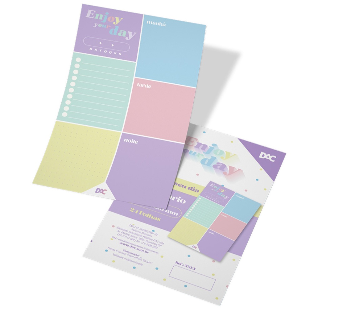 Bloco de anotação diário para organizar sua rotina. As folhas são mais grossas e não deixam a tinta da caneta esferográfica ou hidrográfica vazar para o outro lado do papel. Ideal para quem é organizado e também quem não é tão organizado assim, mas precisa