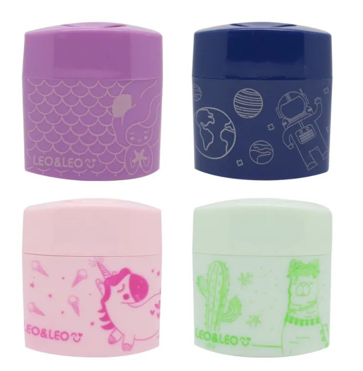 Apontador Tematico, com deposito, formato oval, aponta lápis comum e big.