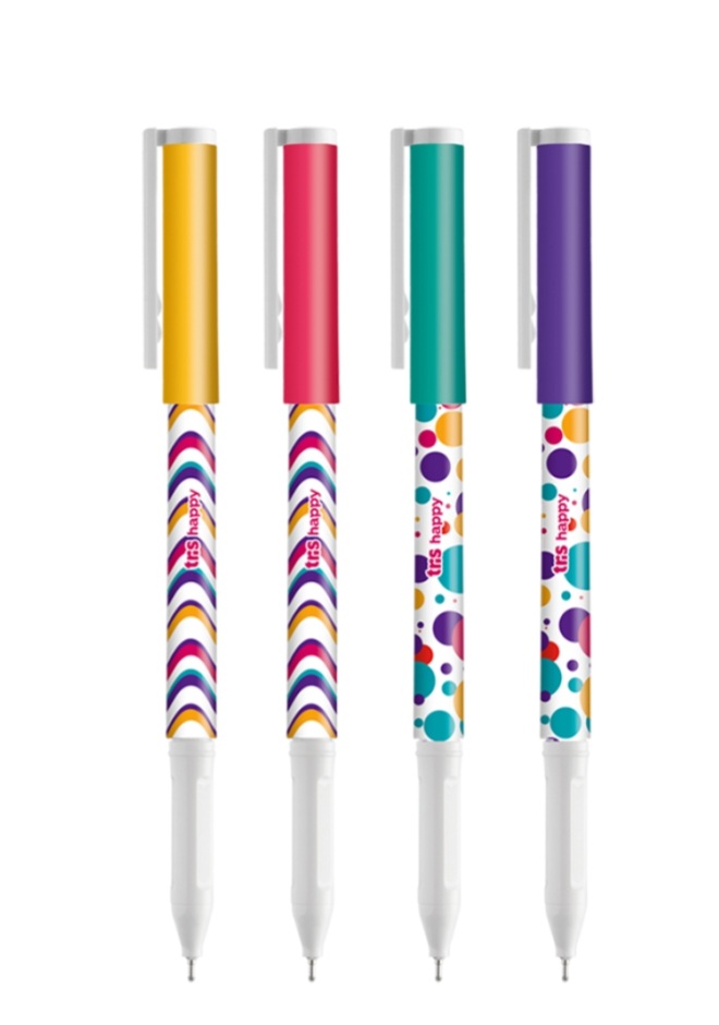 Com estampas lindas e divertidas, a caneta Happy possui ponta 1.0mm e tinta azul de traço super macio, além de pega triangular muito confortável! Em 4 opções de cores de corpo super colorido pra você escolher!