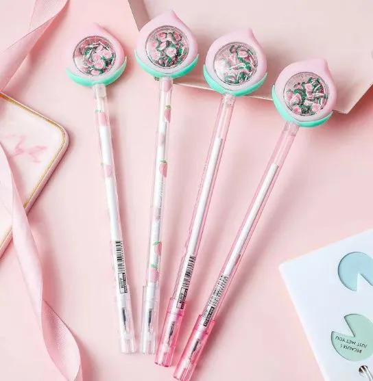 Caneta fofa de pêssego, ponta fina, tinta em gel