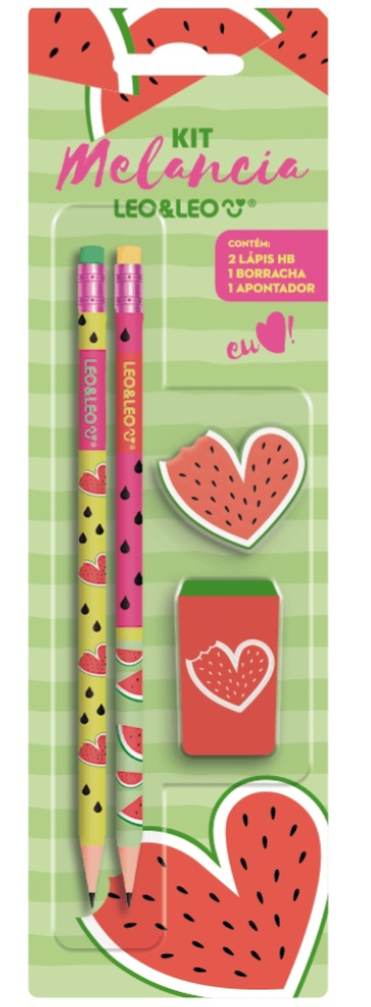 Kit escolar: contém 2 lápis, 1 apontador e 1 borracha com tema lindo do melancia