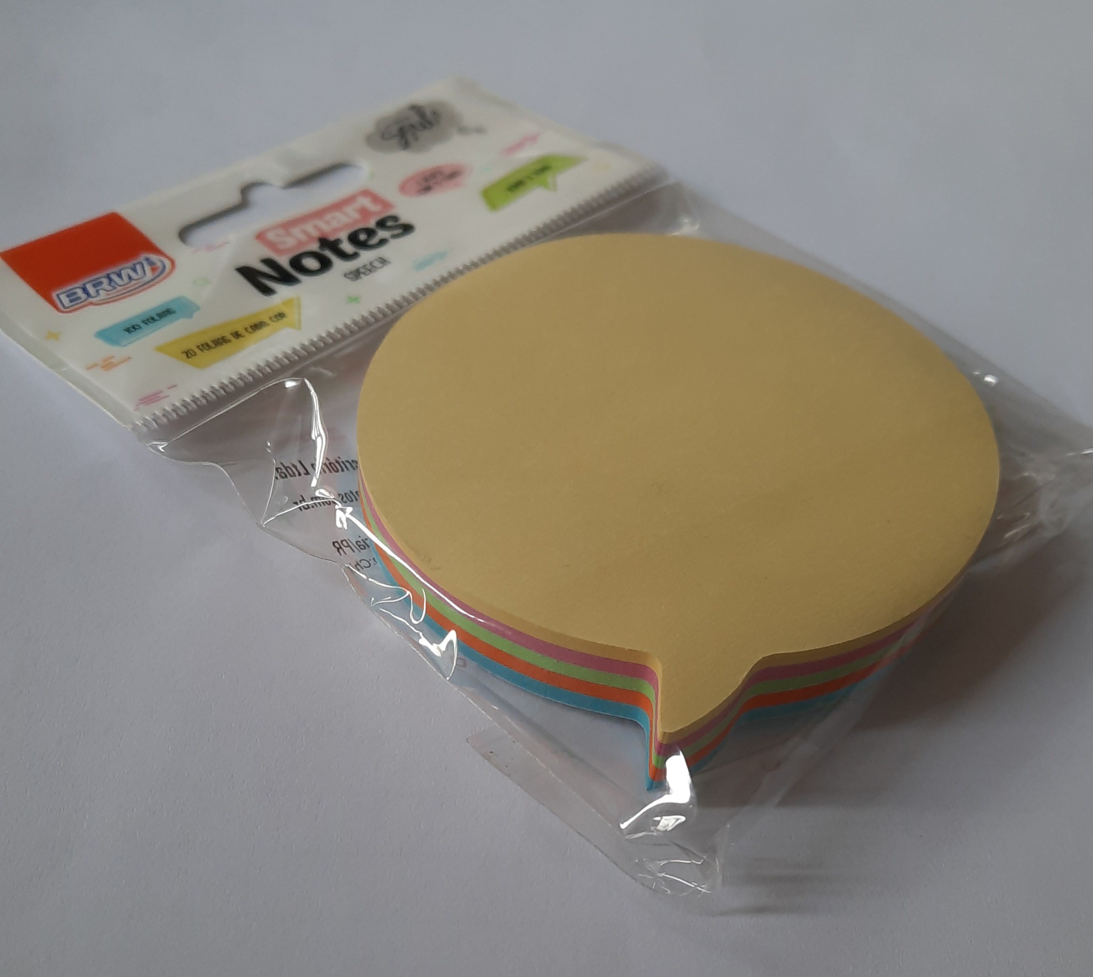 Bloco adesivo em formato de balão. 100 folhas, dividida nas cores amarela, rosa chá, verde, rosa neon, azul